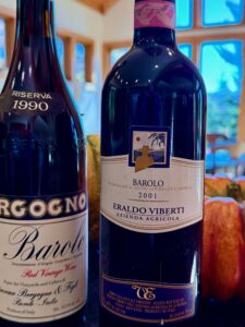 Barolo is named after the town around which the grapes are grown. For a wine to be labeled Barolo, it must be made in the geographical confines of that government-designated appellation. In addition, Barolo must be aged for two years in oak barrels and one year in the bottle before it can be released for sale. Barolos can range in price from about $40 to several hundred dollars a bottle. One way I’ve found to speed up drinkability of young Barolo is to decant the wine for extended periods. For wines under 10 years old, I will pour them into a carafe for up to 12 hours before consuming them.